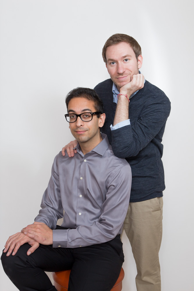 5. The next section below would be for bios...my partner and I would have transparent head shots, side by side split-screen. When you hover over our headshots, a button for "bio" appears. When you click the "bio" button, an expanded bio appears.