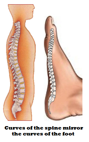 - perhaps a side view of the foot showing the spine points in the feet with the top half of the human body next to it showing the spine...thus showing that the spine in the body is reflected in the points in the foot.