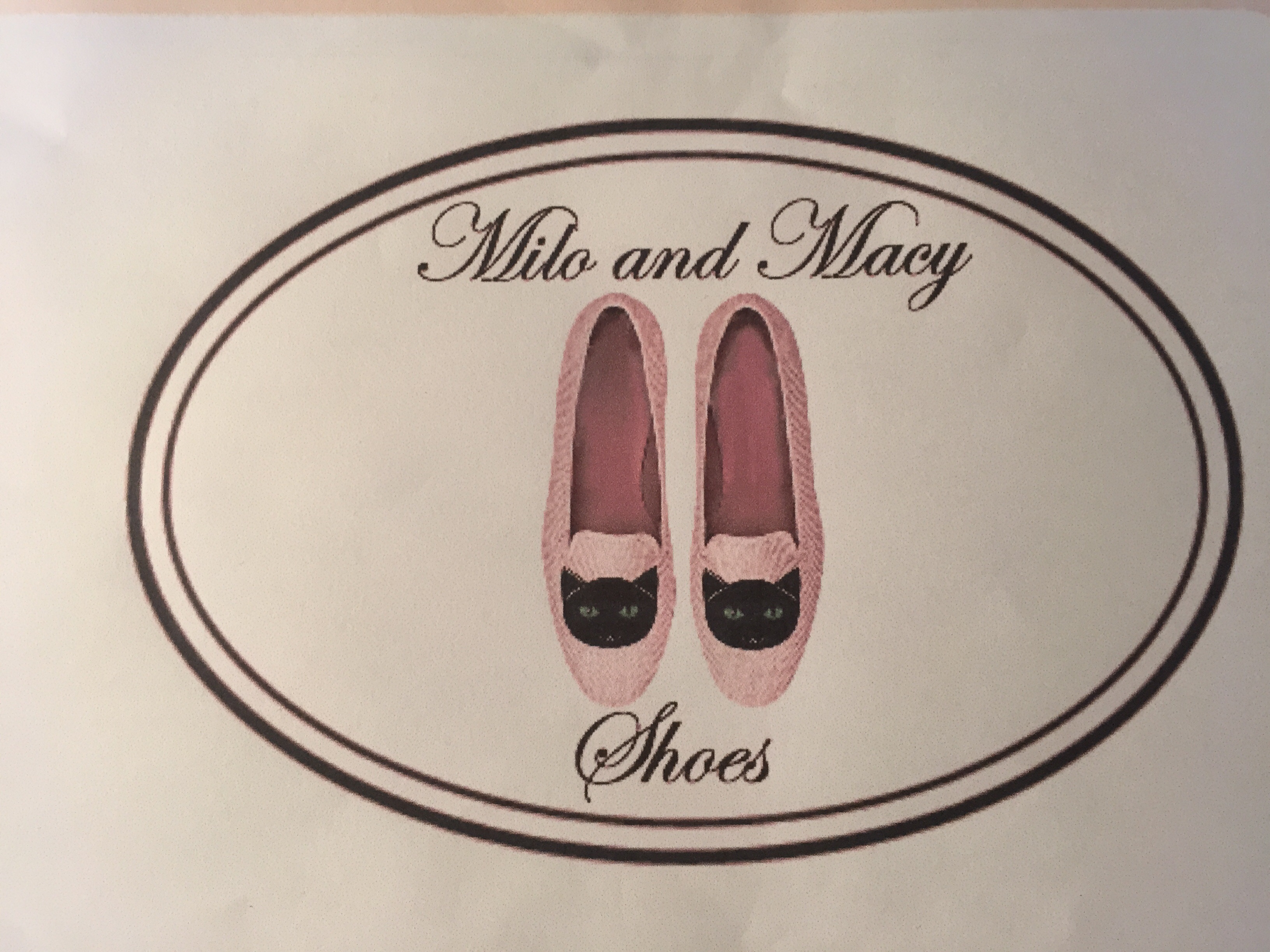 It should also incorporate the name Milo and Macy Shoes . I would like an oval shape framing the design