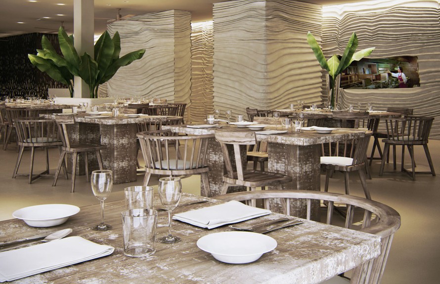 The restaurant will be a very large and modern looking space, using light coloured rock faced walls as found around the Mediterranean however, lightning features will be old world and will draw on themes from a Greek fishing village.