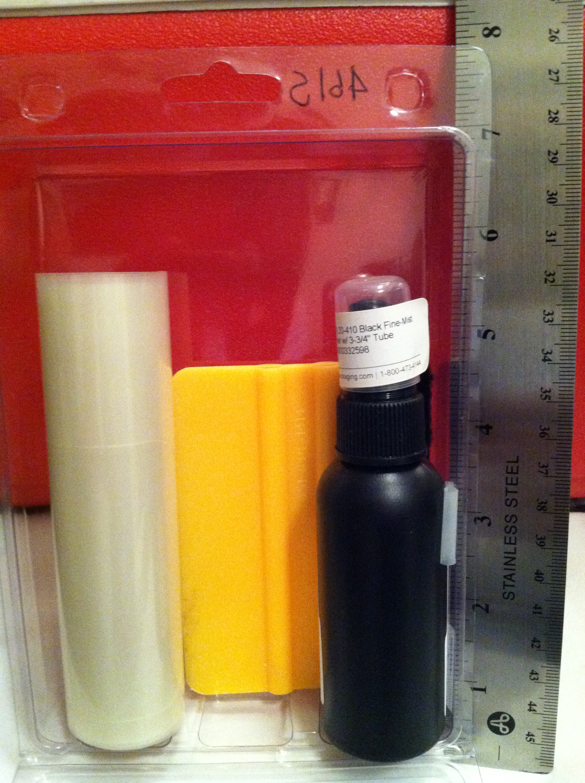 This package insert will be for sample packs that we will give away to car wash owners / operators at our trade show booth to encourage them to try the system on their own. The sample package (not for resale) includes 3 Bumperskinz in a roll that is one inch in diameter and 5 inches high, one squeegee applicator (3 inch x 4 inch), and one 2 ounce bottle of spray lubricant ( 1 1/4 inch in diameter x 5 inches high). These contents will be contained in a clear plastic clamshell package. The insert is approximately 4 inches wide by 6 inches tall.