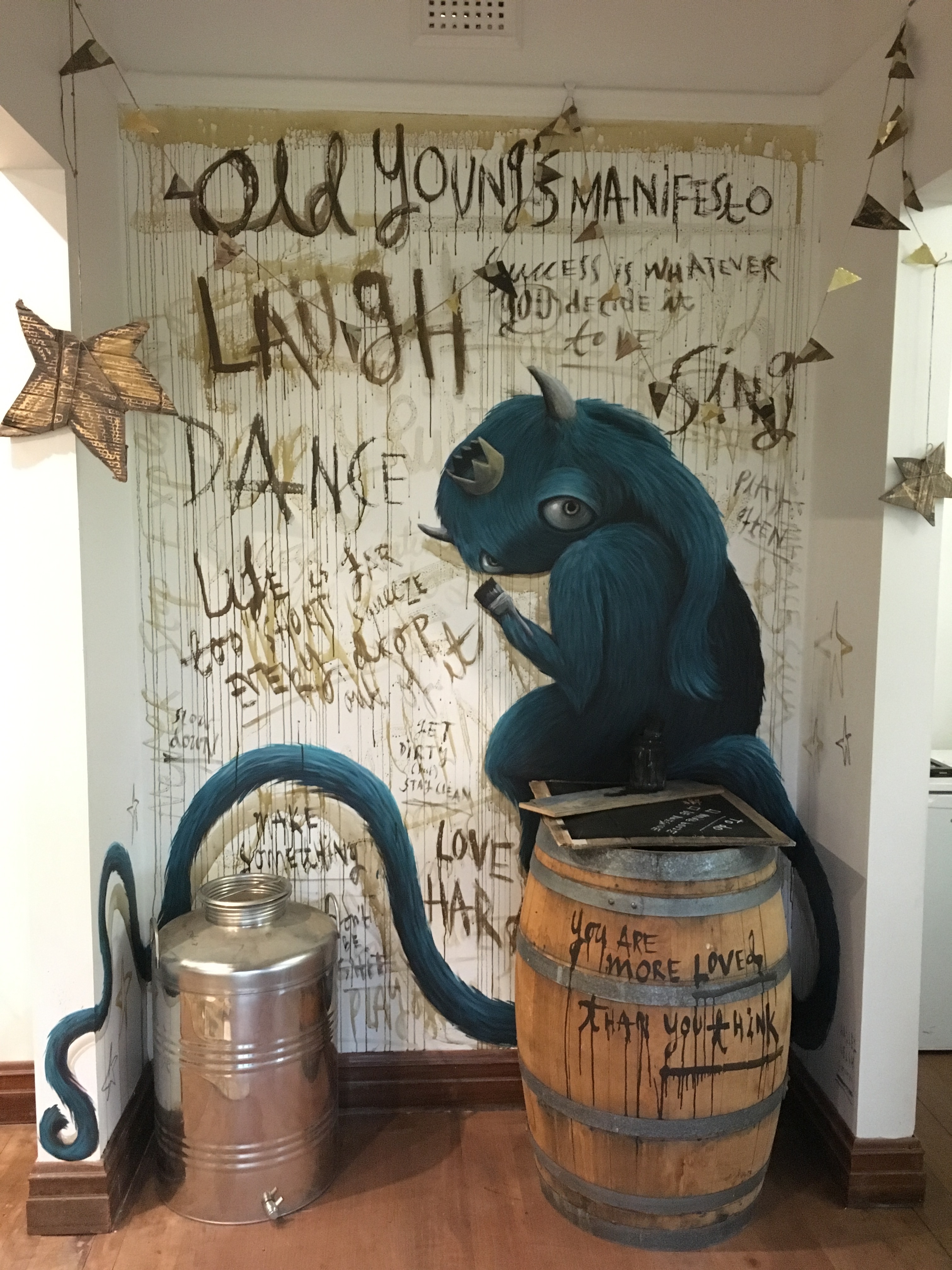 We have a manifesto - The Old Young's Manifesto -that we proudly display in our tasting room, and was used as a basis for an artwork in our entry.