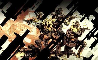 - Some form of military and weapons motif. Bold but dark Colors that stand out. Eye catching graphics, depth using ghosted images.