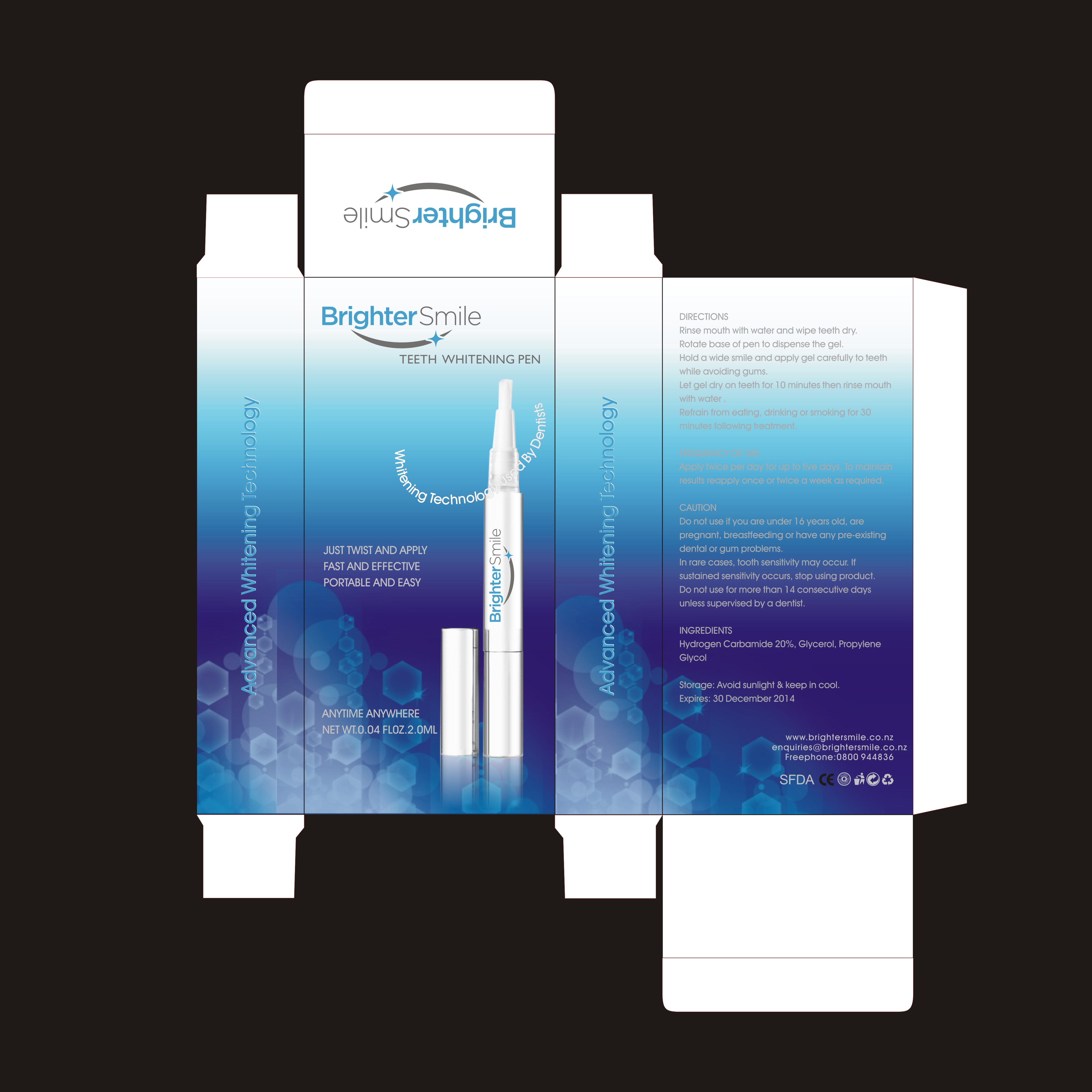 We would like to have some new packaging designed for our Teeth Whitening pens.