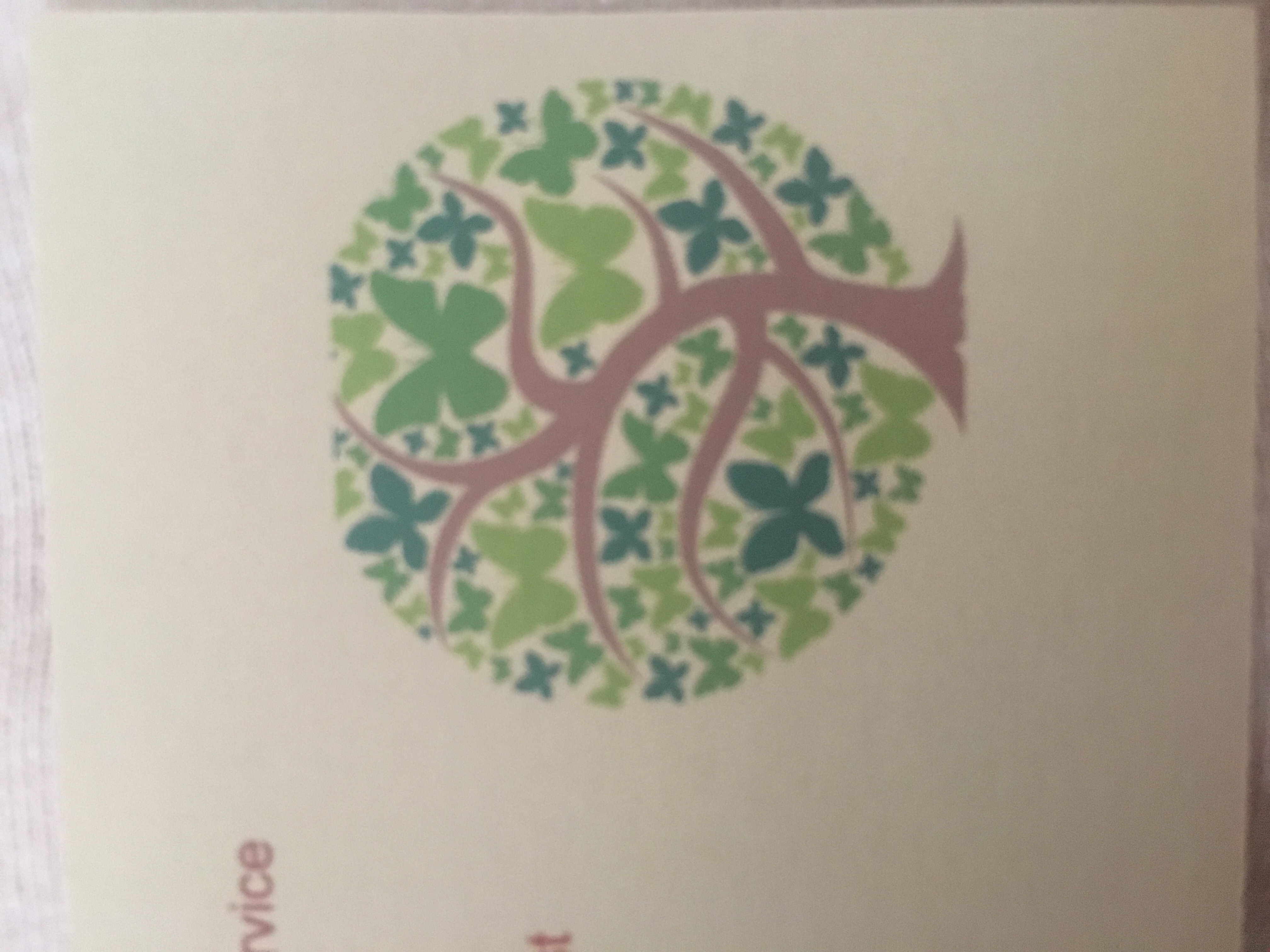 -different shades of green,brown tree trunk, earthy postal colours, simple and elegant. I don't want it complicated but trees respresnronf parent and child , not overcrowded with butterflies either