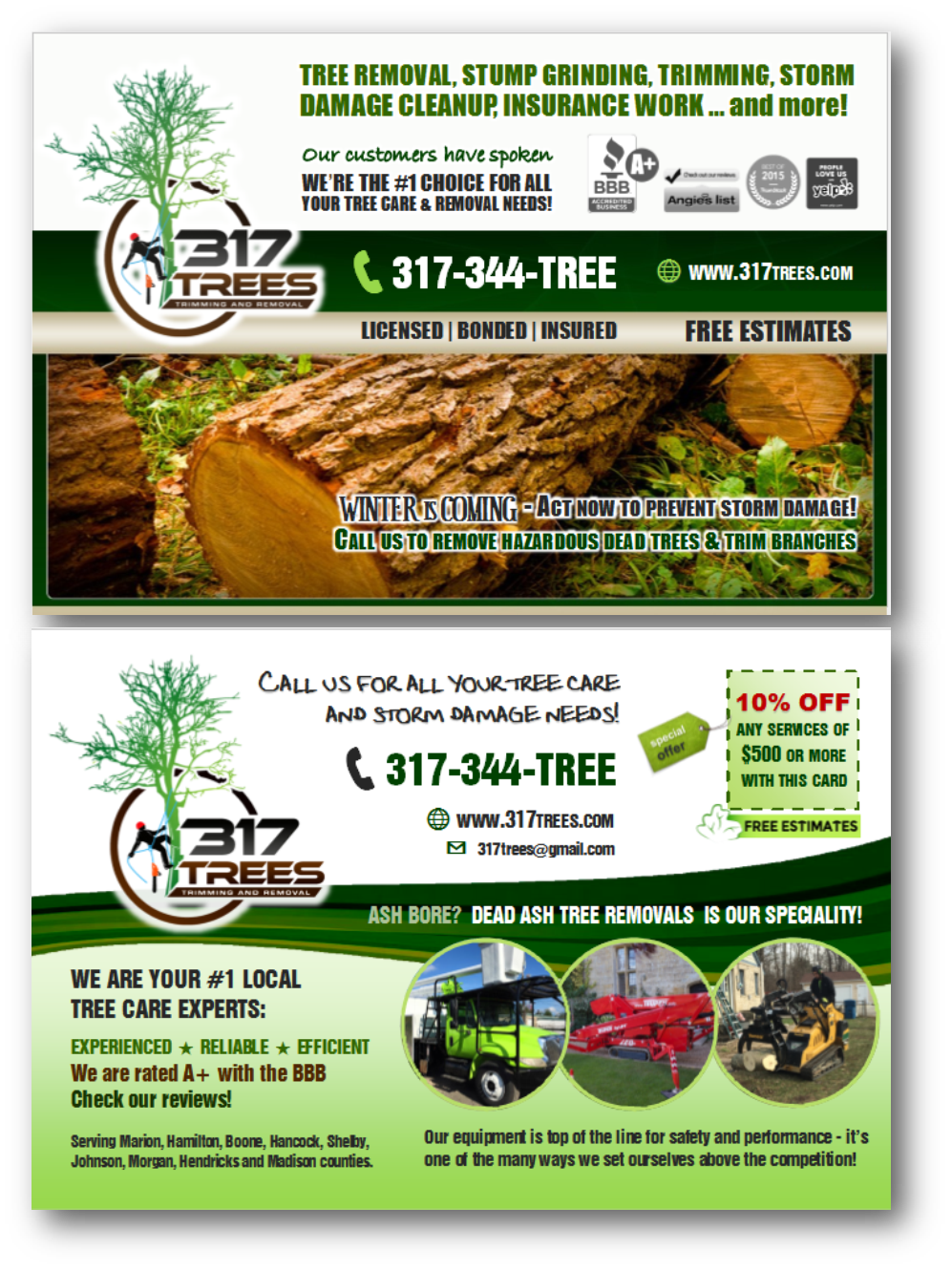 Phone number is 317-344-TREE
