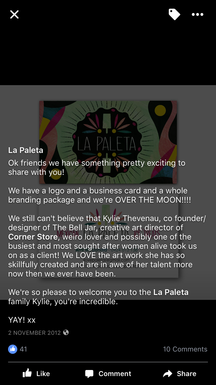 1x image of 'La Paleta' business cart. I love the playfulness the colours and overall design, designed by Kylie Thevenau.