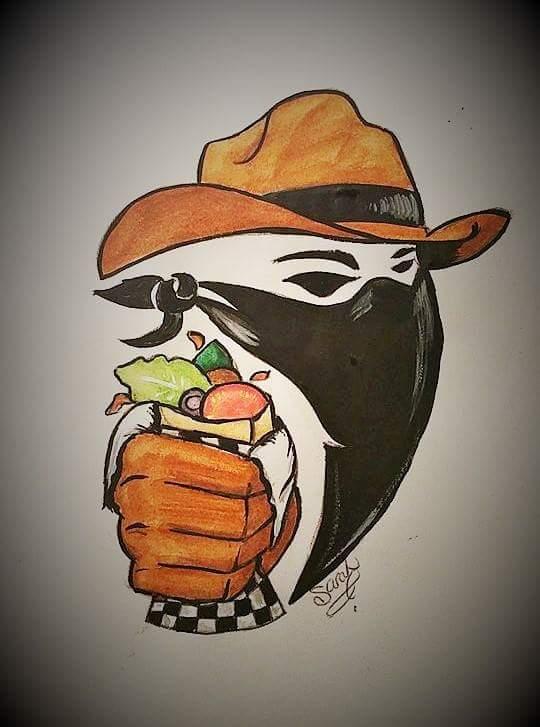 I named it this because we are a fast food place with not much of a sit down option. Our bigger location will change this but I don't want to change my name. So we want to incorporate some kind of cowboy/western them to our logo. Possibly on the run part of the name can work or a wild bandit holding a Donair.