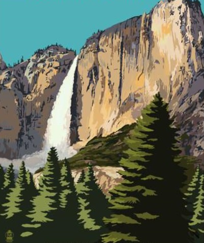 The theme of this design is national parks, vintage poster style. Each of the 4 dinner plates will feature a different image from a national park on a solid color background that will cover the full surface of the plate.