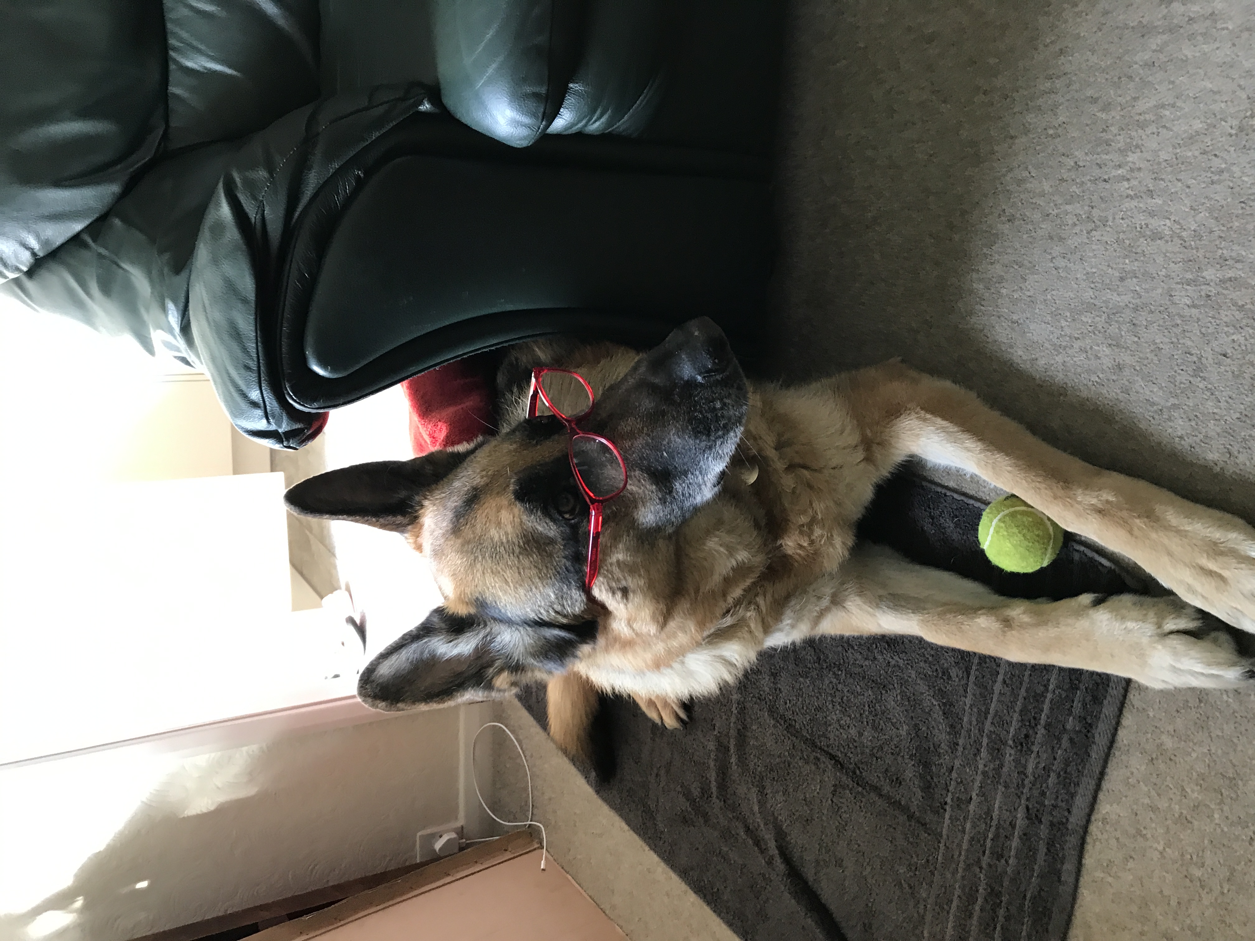 - My initial thoughts for a logo are based upon a number of his final pictures that we took of him. He took to wearing Red Glasses and was always playing with his Yellow Tennis Ball, so I have a number of ideas for marketing off the back of this. One such idea that I would like Logo designers to explore is the use of Red Glasses and Yellow Tennis Ball in the logo design.
