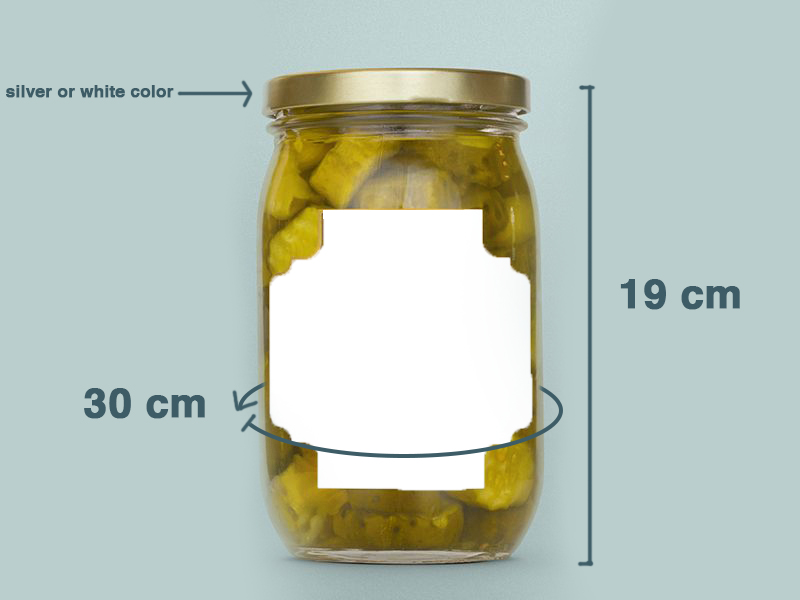 - You are free to choose the label size so it feet the size of the jar which is: Circumference of cylinder: 30cm / height: 19cm.