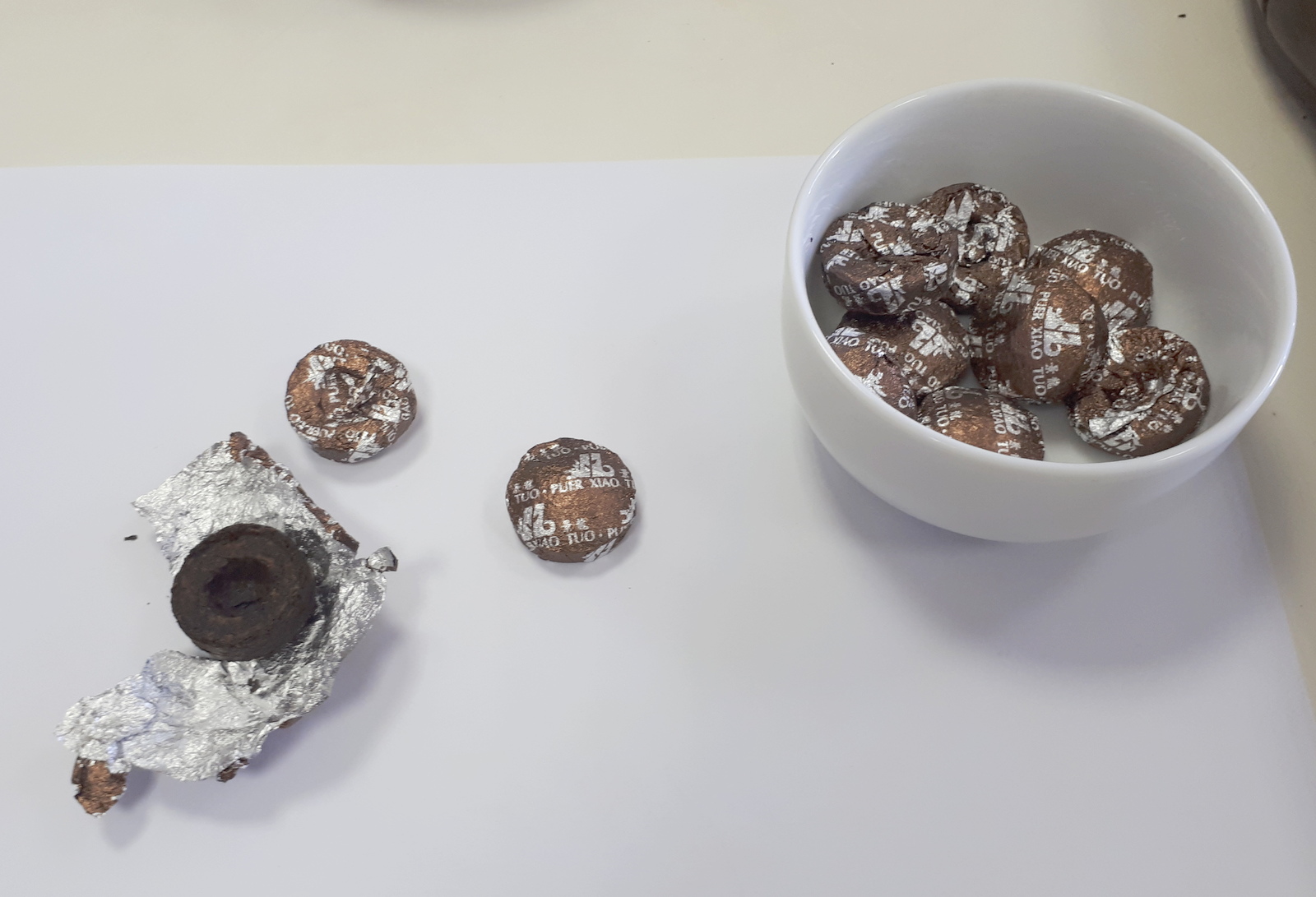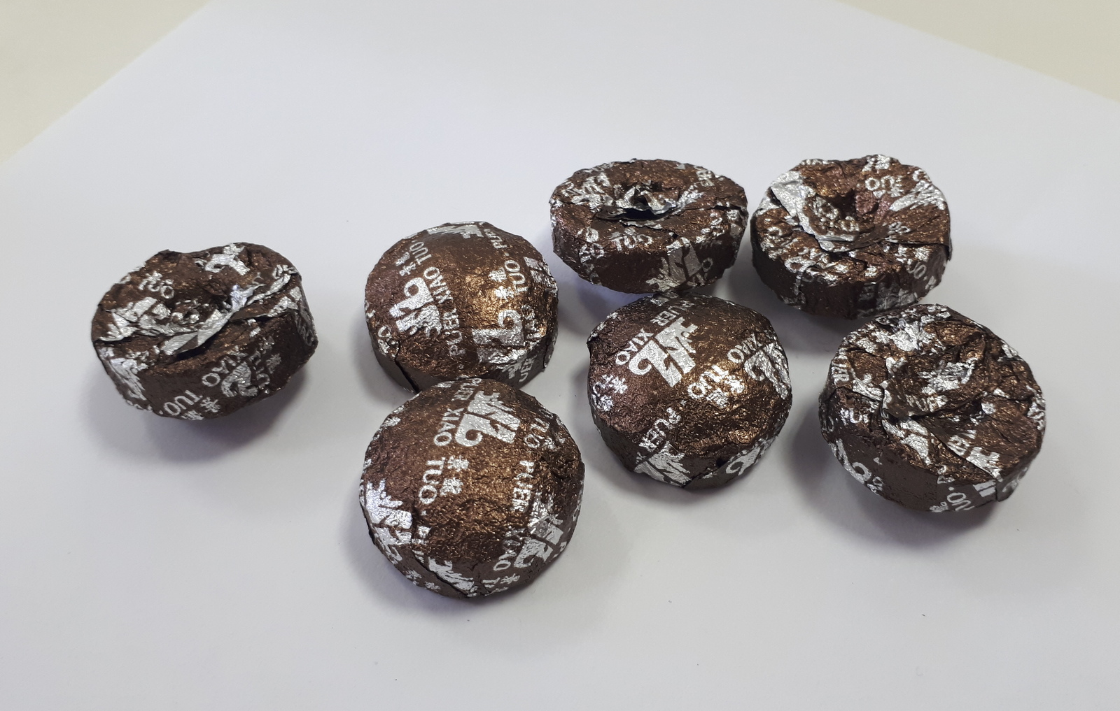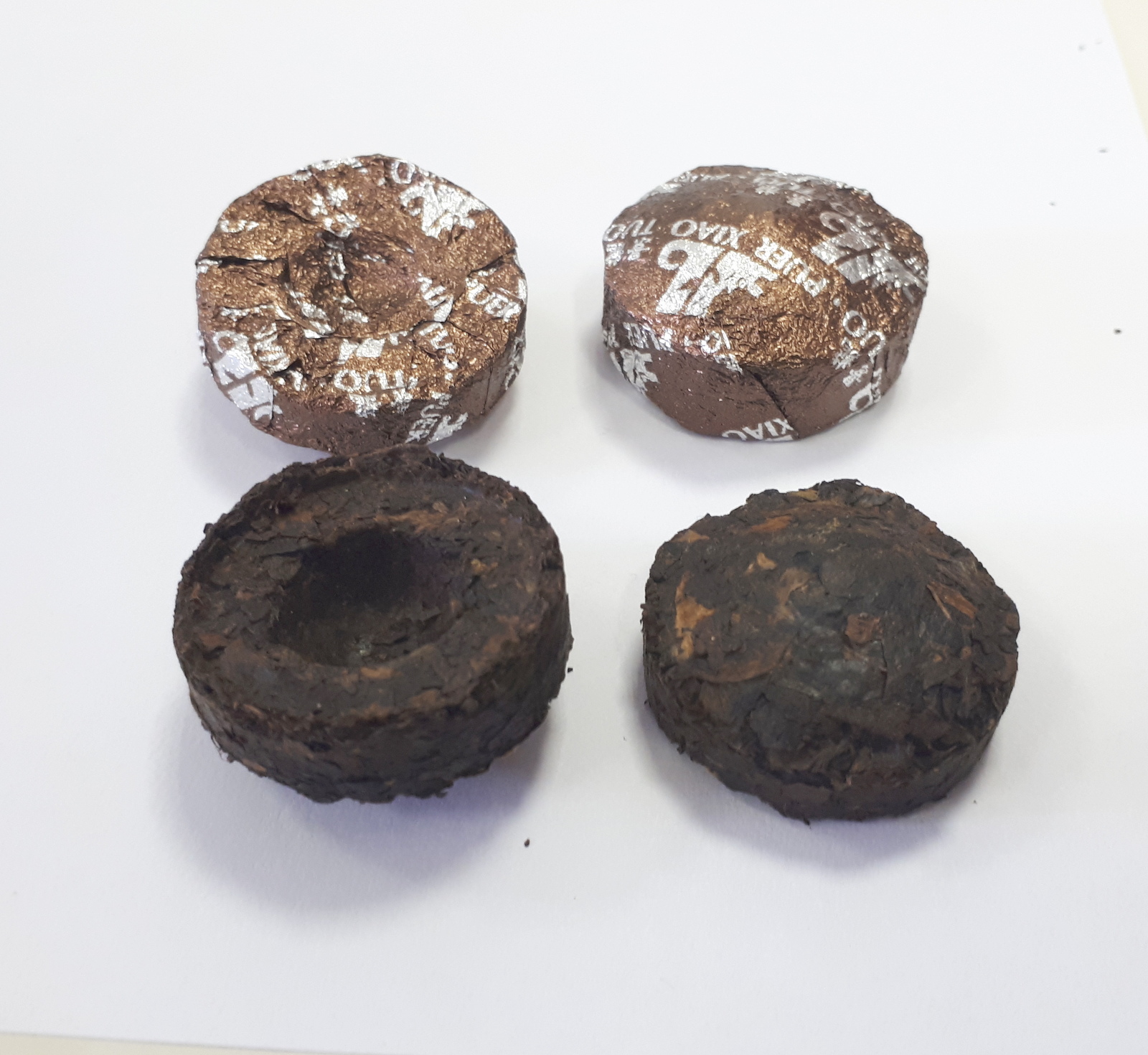 - Puerh mini tea cakes, Jinglong tea factory logo TM (red colour) on the top of frontier, 100% Natural Menghai ripe puerh tea, L-theanine for good mood, Caffeine for boost energy, 20 pcs + 25%, Premium Quality, individual package for every tea cake (nearly 5 gramm)