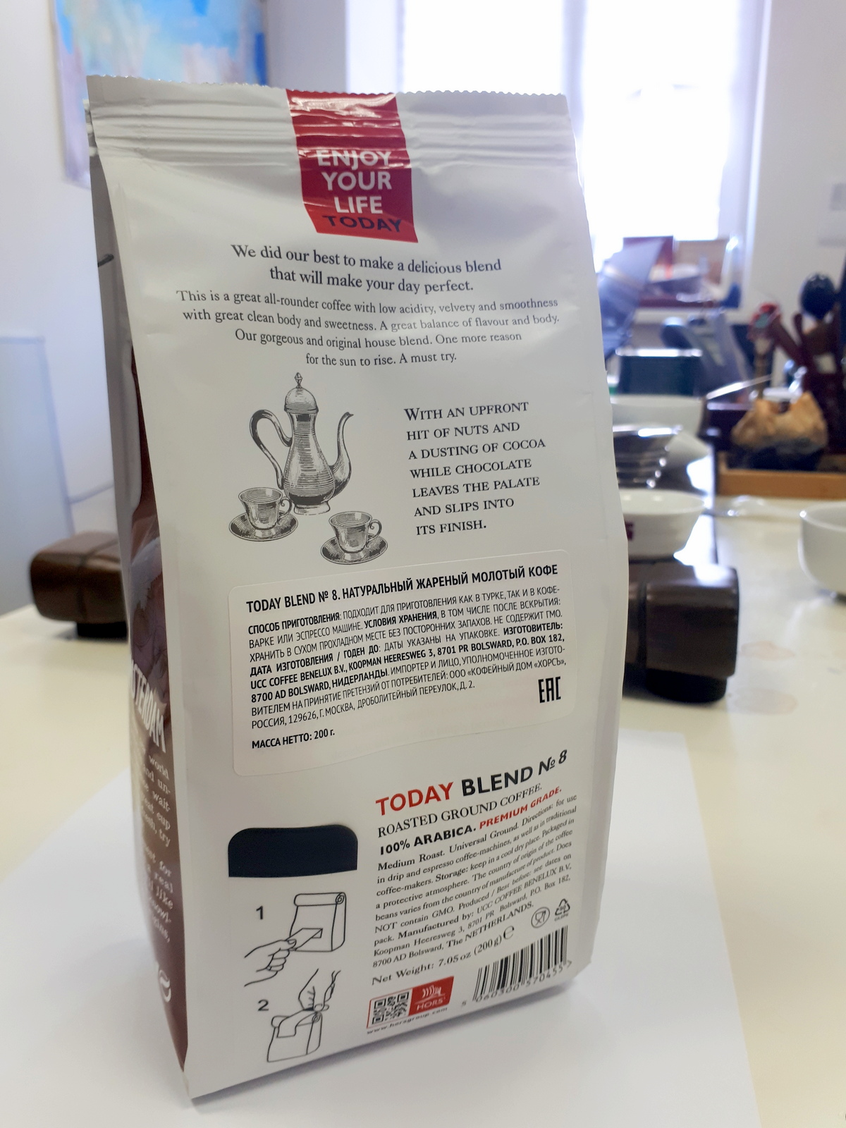 We need soft packaging for loose tea for Amazon USA market, based on design we liked. You can find it on attached files. Tea cup (kettle, mug, etc) with strong black tea in it.