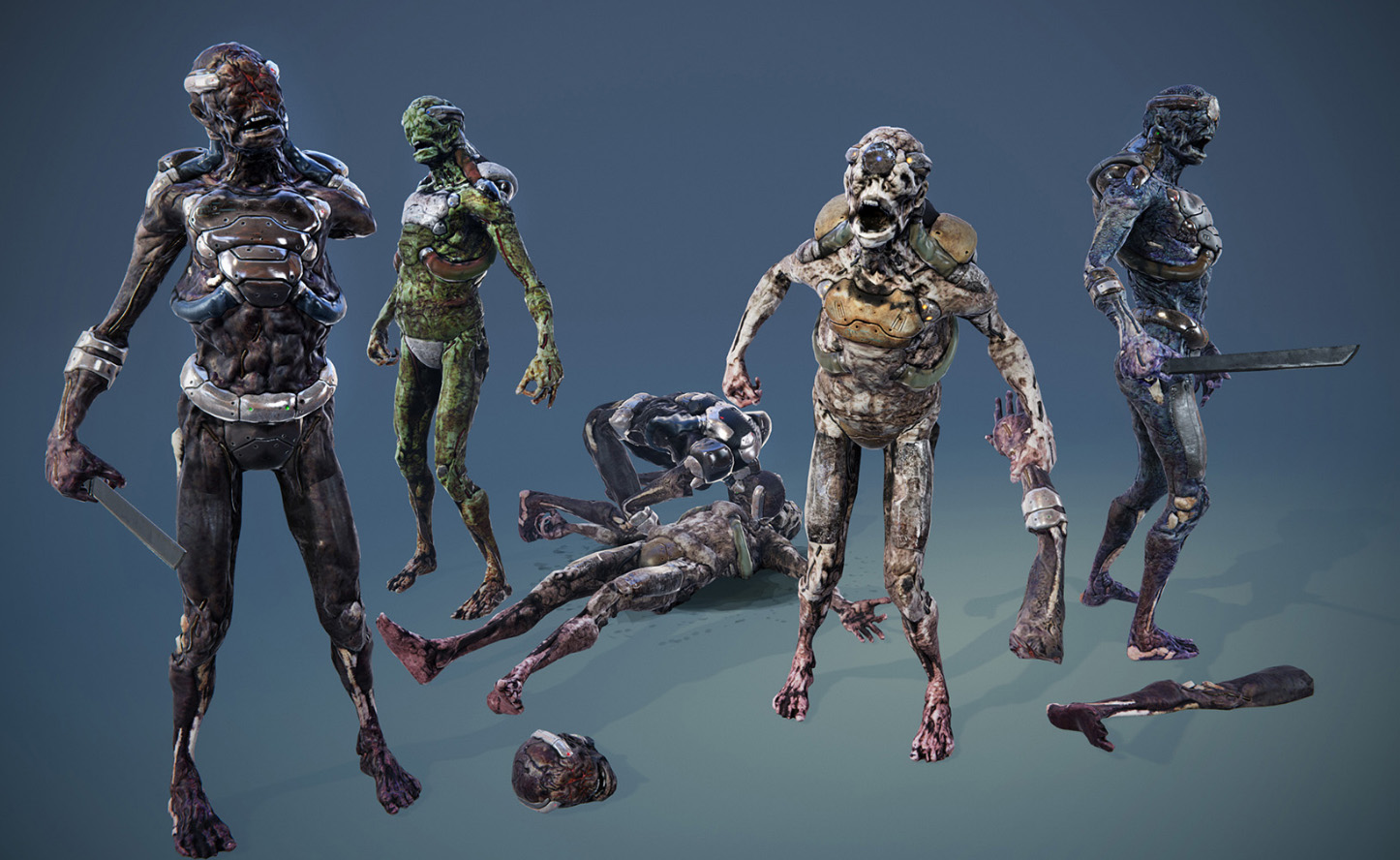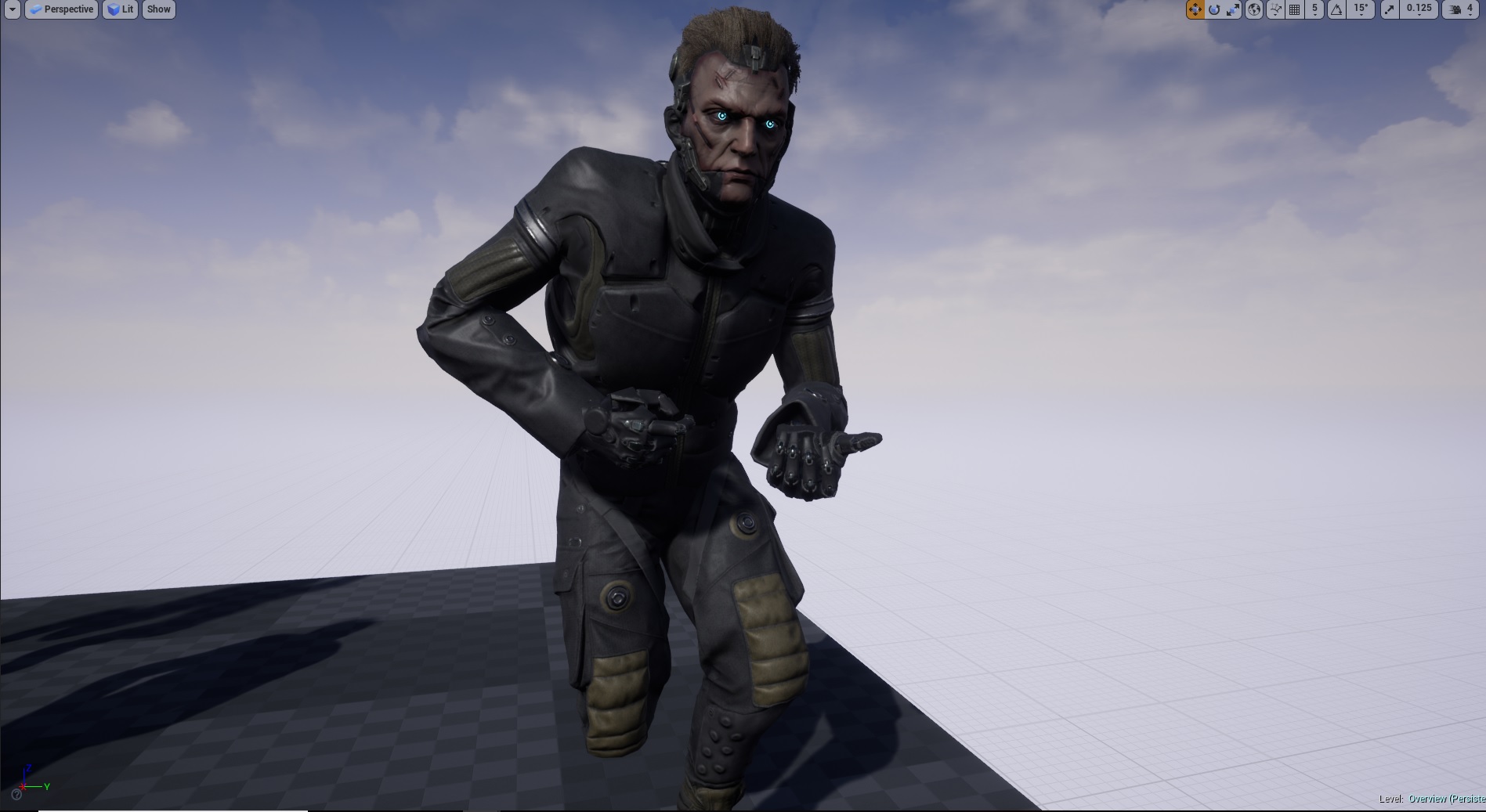 Below are some reference photos the we like the designs of. The first two are our cyber zombie enemies and our main character to give you an idea of the type of cyber enhancements that are on our characters in game.