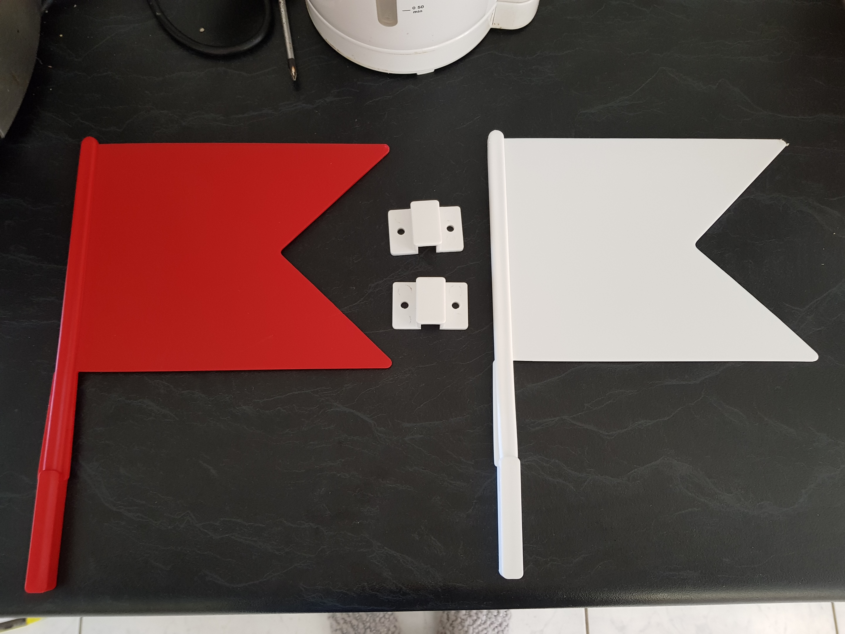 I am launching a new product for my brand, and would like some nice packaging. The product is show jumping flags for horses and as per the photos - 1 white and 1 red flag, with clips. (These are the flags that go on the side of a jump to tell the rider which way to jump over it :) )