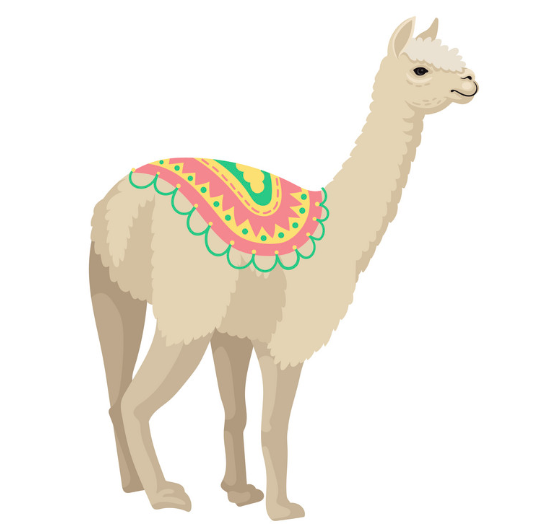 I need a logo of an alpaca with a saddle/ blanket southern america colors.
