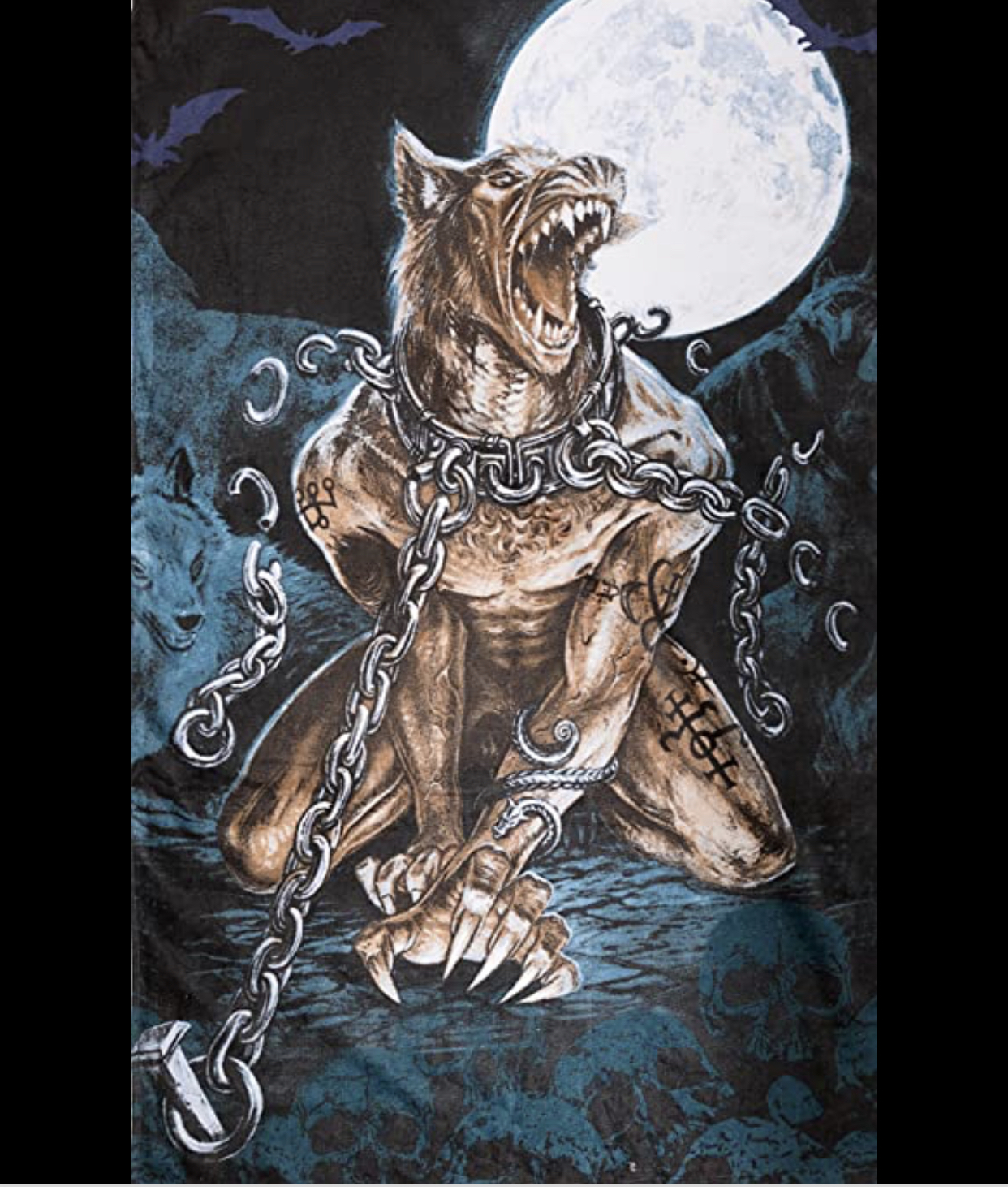 Chains that are breaking as the wolf is getting stronger from working out.
