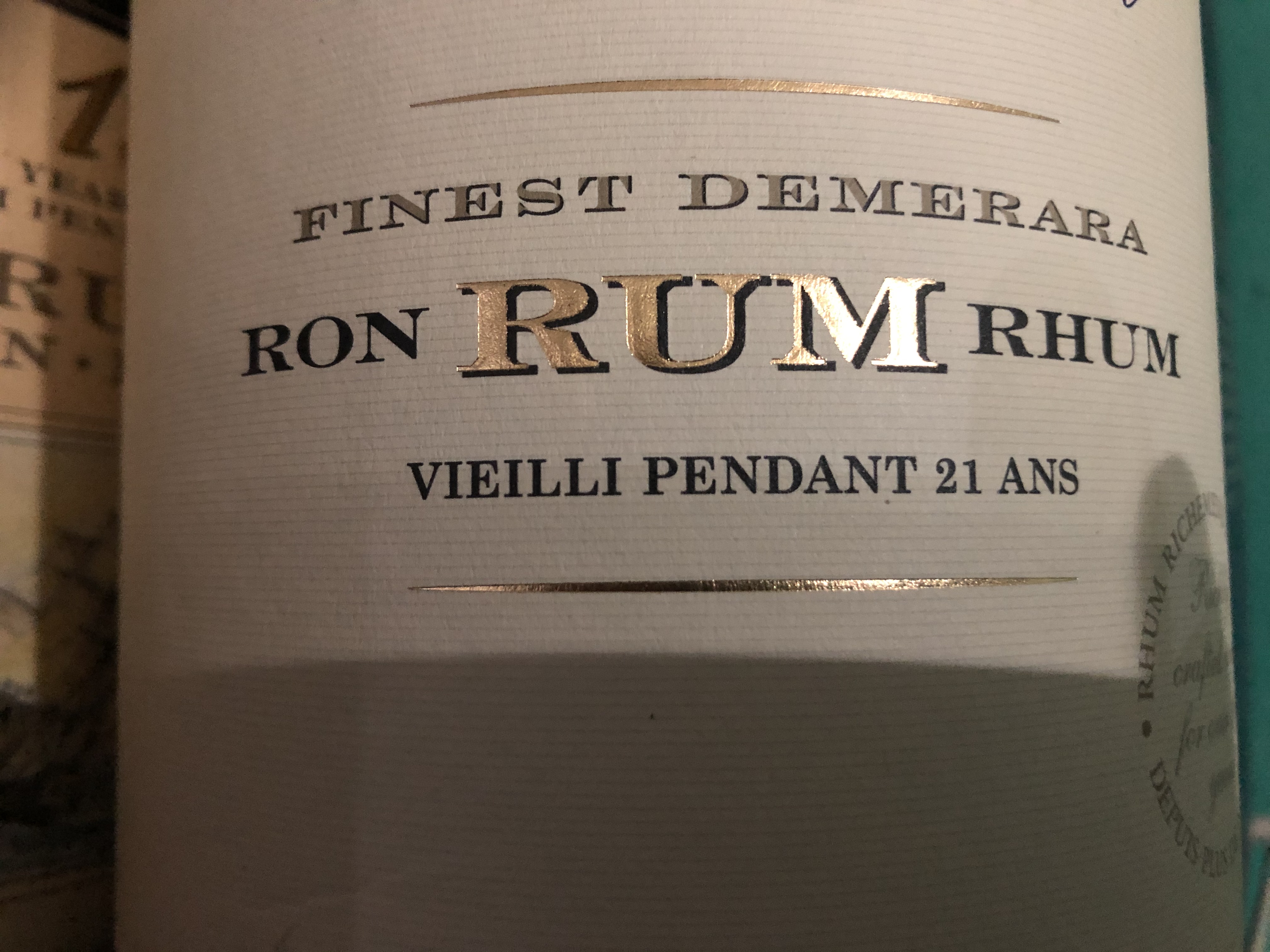 Please use the exact font that is in the picture I have updated! I would like the letters to be A dark navy blue with a gold outline and the same exact beige background as well. The same font as the word RUM in the photo