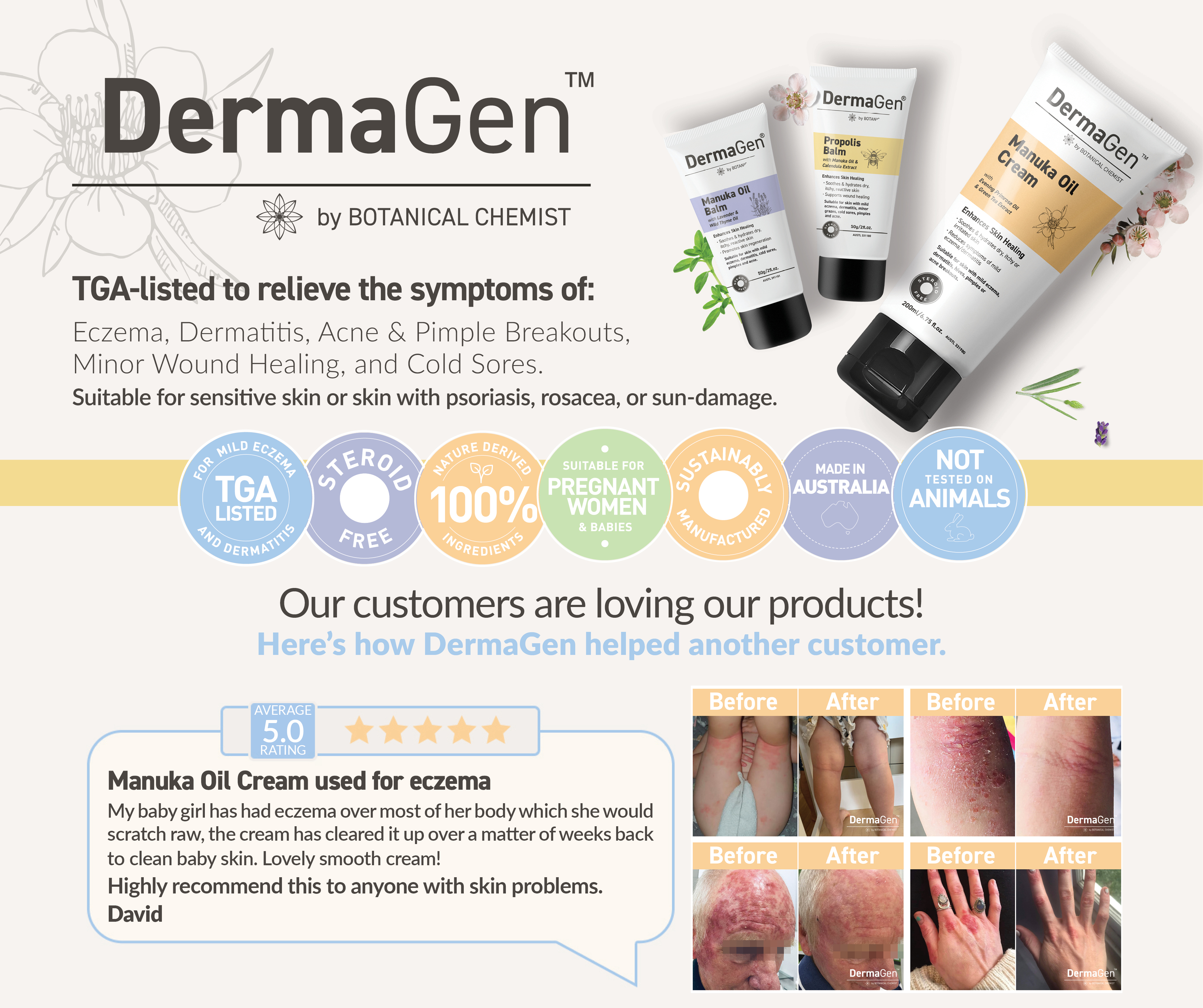 We would like an ad that is dynamic and will attract outdoor people to moisturise and hydrate their skin after being out in the sun. Vitamin B3 (Niacinamide) helps provide cells with energy to repair itself after DNA damage caused bu UV radiation. Manuka oil has anti-oxidants that protect the skin against the harmful effects of the sun's radiation. Combined they are a powerhouse for healthy, hydrated and nourished skin. Great for those who spend a lot of time outdoors in the sun, or have sun spots or have been treated for sun spots. Surfers, atheletics, runners, people who work outdoors..We would love videos or animation. These products are made in WA, using 100% nature-derived ingredients. www.dermagen.net.au for more information. Would prefers video or animation ads.
