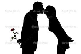 I am looking for a silhouette of a man, holding a rose behind his back with his left arm, while tilting his hat slightly downward with his right hand.