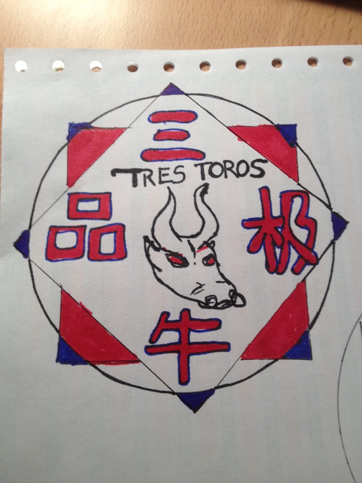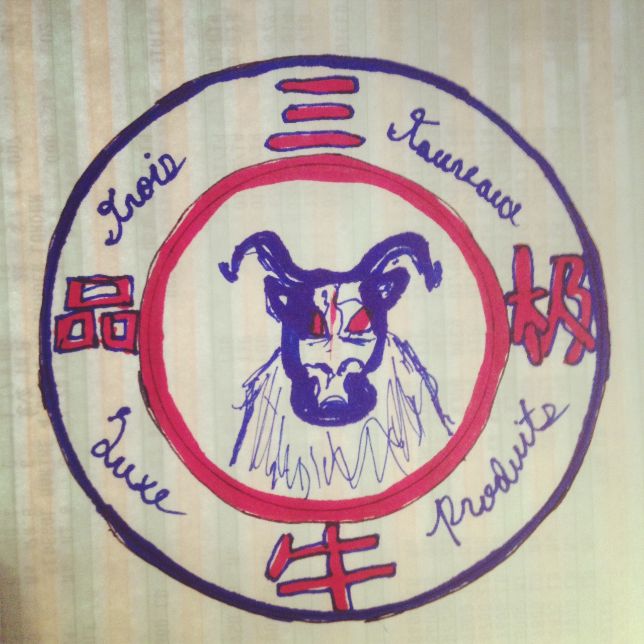 We need a logo design for tags, labels, screen prints, adverts, etc. Company is called "3 Bull High Quality " but the text on the label will be strictly Chinese “三牛极品”。 This logo will be used in many contexts, and we would like the logo to incorporate red, black, blue, and white. Please do not design anything resembling Red Bull logos. The central or focal part of this logo should be text based - please draw on traditional Chinese chops, seals, ceramics, and embroidery for inspiration. The design should be minimalist and communicate a high level of taste and reserve.