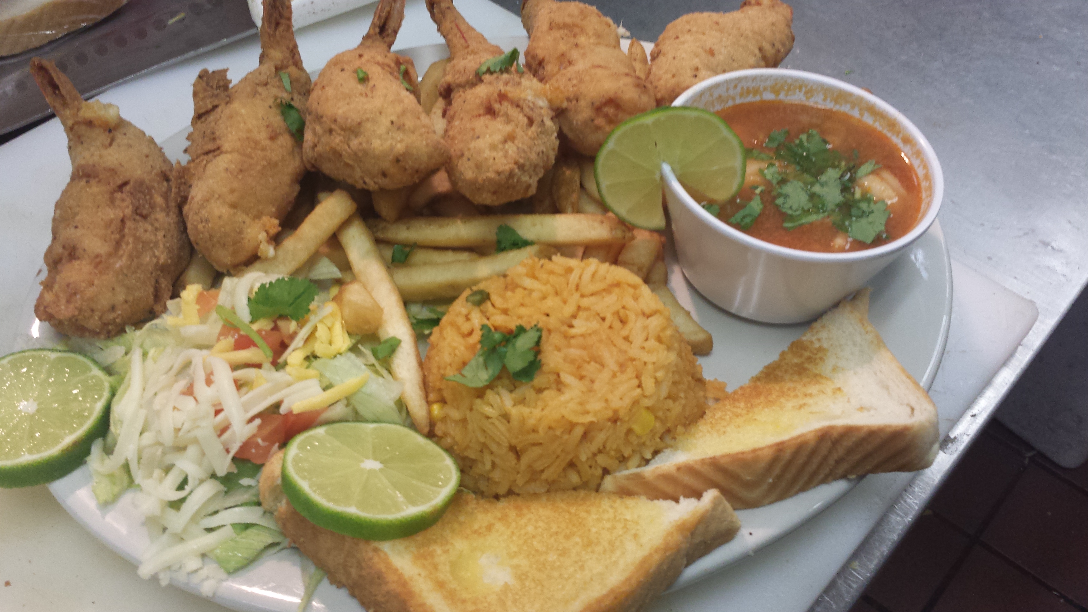 CALDO DE PESCADO Y CAMARON small 7.99 large 8.99