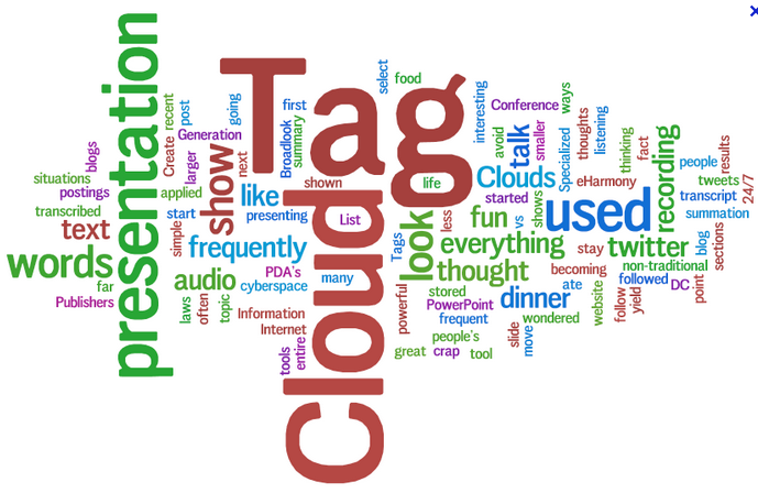We would like a tag cloud whereby the points of the project are in the tag cloud.