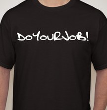 We need a T-shirt for our company Doyourjob.com. We are a combination of a sarcastic clothing and trinket company with plans of branching out into an online rating service. Our current logo has Doyourjob! as one word. This is not a requirement but it should have the exclamation mark and the Register mark as it does have a trademark. This will be just one of many design we will be asking for in the future. Go ahead ......Get creative.