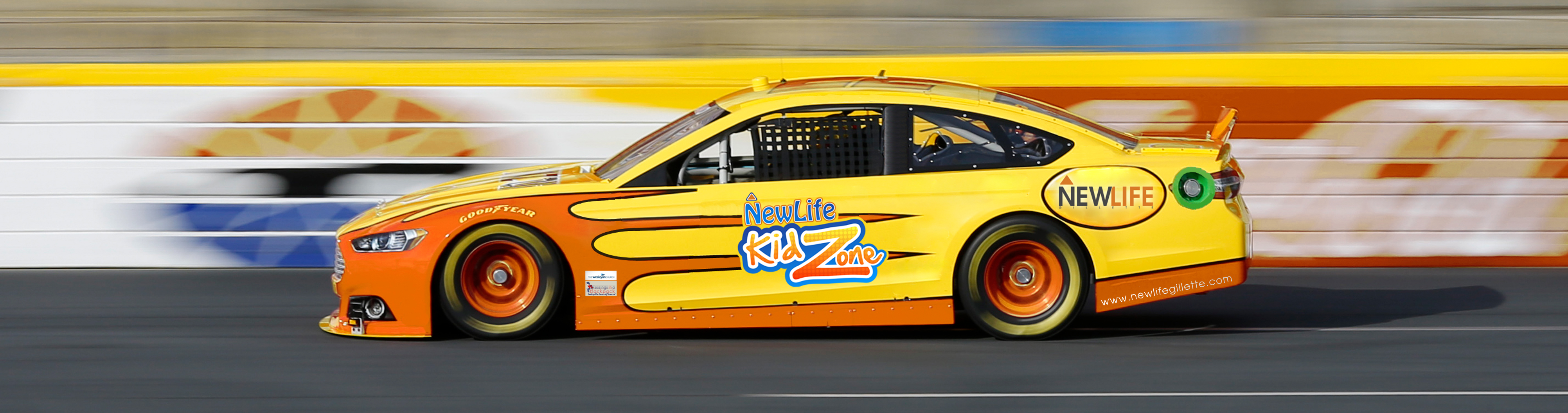 Our church has a room in our children's area (KidZone) that has a nascar theme. We are wanting to order a large custom made graphic (wallpaper style) to cover the focal wall in the room. We are looking at ordering from http://www.megaprint.com/. I have enough photoshop experience that I was able to make an example of what I'm looking for, but it is too small and poor quality. I've attached a picture of the wall (file 7) and the image that I made (file 4). The final print will be 304" by 88" so this will take a very large image. We would like the image to have a nascar theme and include our KidZone logo. The idea we've been working with is a nascar car with some of our church branding as the sponsors on the car with the main sponsor being our children's ministry (KidZone). I'm also attaching some of our logos. Our church often uses orange and grey as our branding colors. (Grey - Pantone solid coated 446 C and Orange - Pantone solid coated 7413 C) Our children's ministry uses "hobo std" for a primary font, and our church uses "avantgreek" for a primary font. With all this said, I am open to other ideas for the wall. If you have an idea of what we should put on it, I am very open to suggestions.