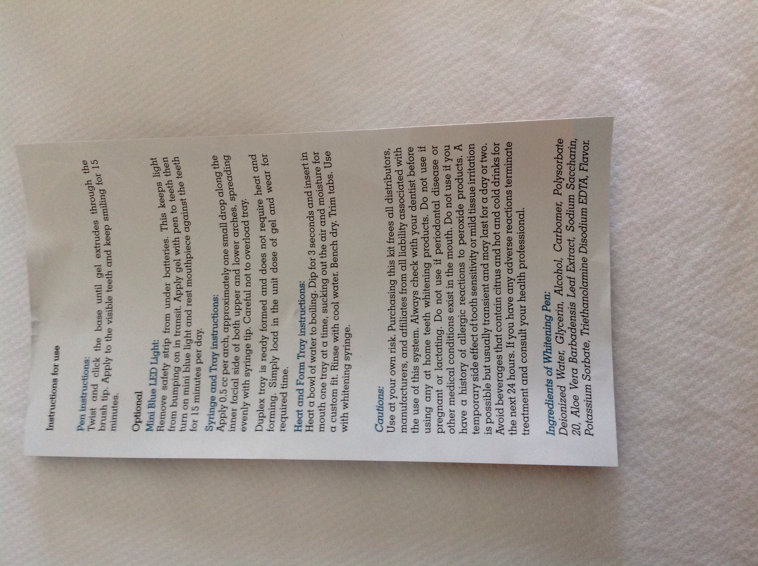 - Wear for 15 minutes. This rehydrates the teeth after the whitening and may diminish tooth sensitivity.