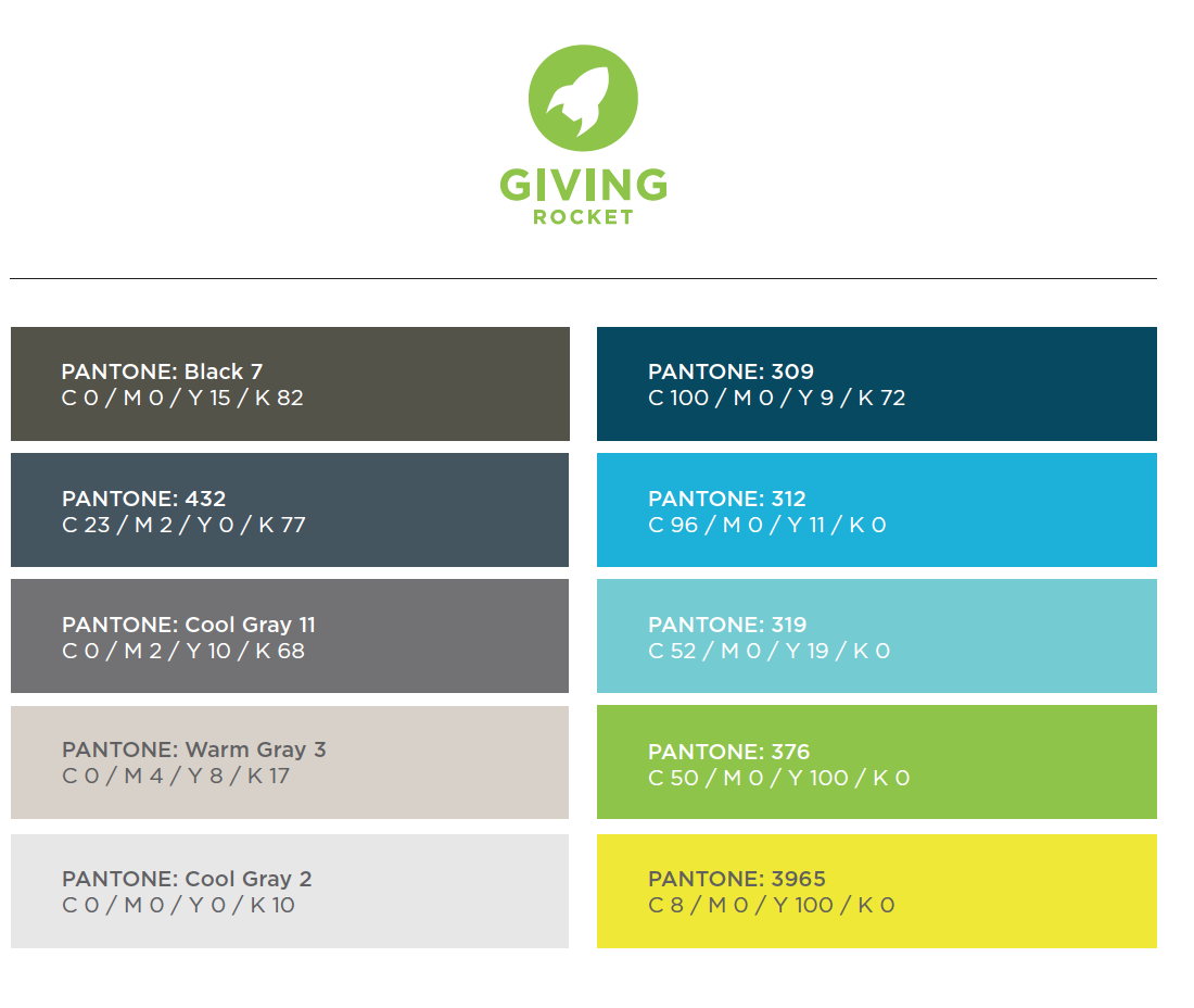 - Rocket Logo and Giving Rocket color palette.